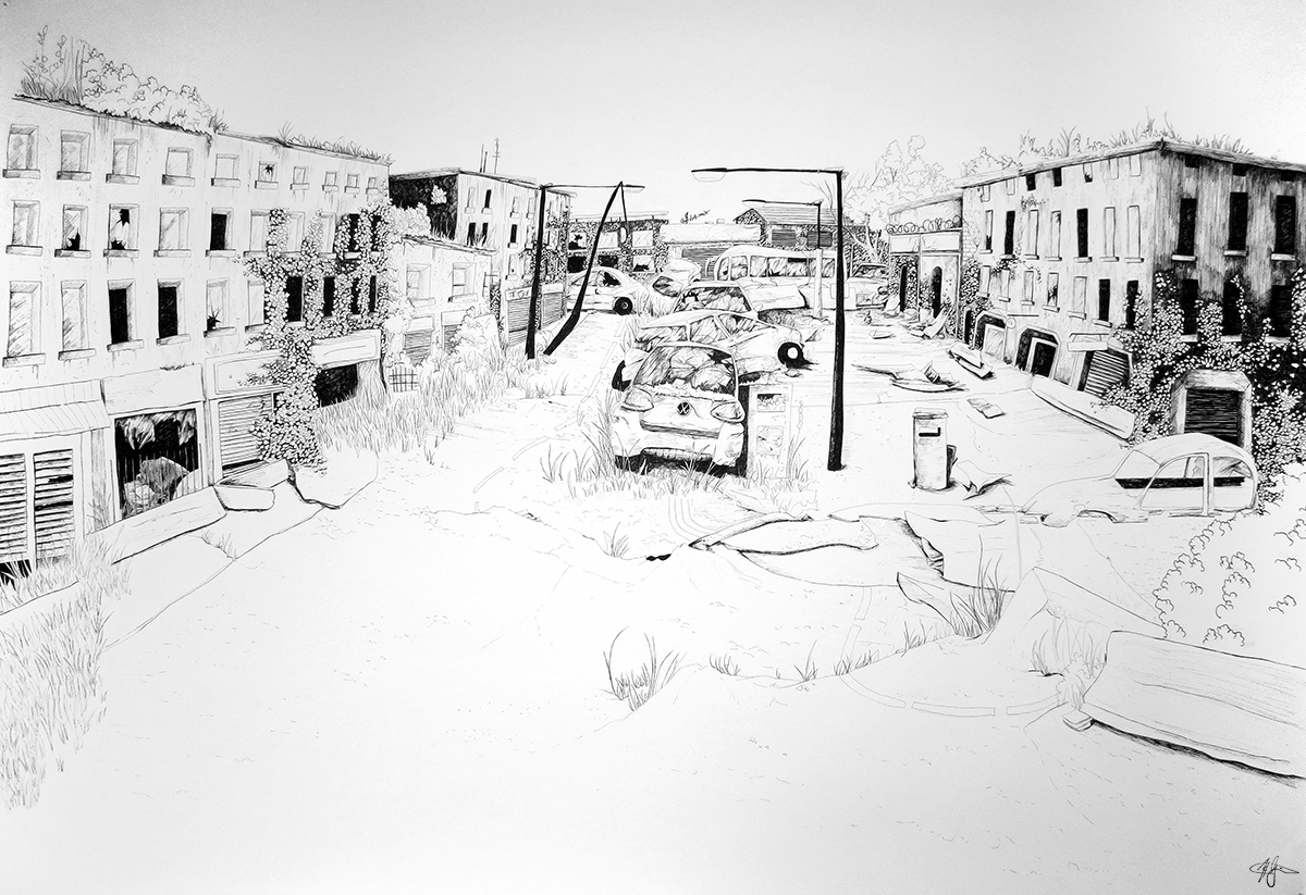 Archival pen on fabriano paper. Four drawings x ( 150 x 100 cm ) . 2014